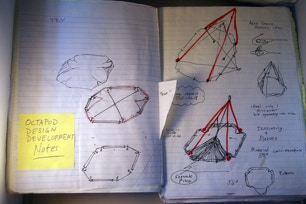 D4 Octapod Notebook. Even though I spent quite a bit of time developing the Octapod, it is the least successful of my D4 designs as I discovered it is difficult to eliminate taco with an 8-piece fabric-suspended frame design unless square tubes and joiners are used.
