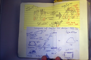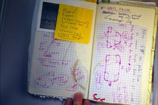 D4 Trapezium Design Notebook: each design is a flurry of ideas and concepts merging into one--I try to keep track of the process with notebooks specific to each design. The D4 Trapezium was second D4 design after the full size ledge was produced funded by the successful Kickstarter. This design fits in a daypack and has been used extensively in the Tarkine Rainforest in extreme conditions. See below for more tips on build.
