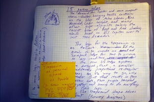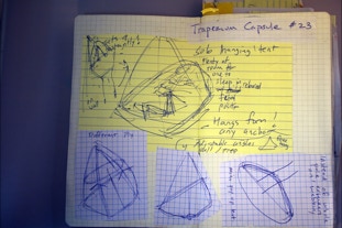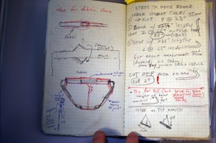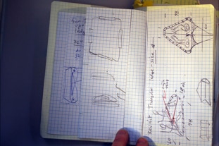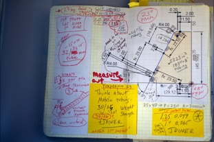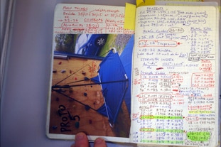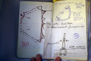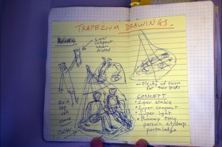 D4 Trapezium Design Notebook: each design is a flurry of ideas and concepts merging into one--I try to keep track of the process with notebooks specific to each design. The D4 Trapezium was second D4 design after the full size ledge was produced funded by the successful Kickstarter. This design fits in a daypack and has been used extensively in the Tarkine Rainforest in extreme conditions. See below for more tips on build.